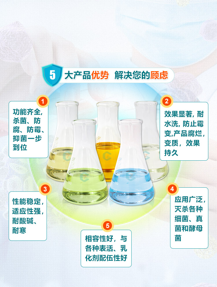 • 多效合一,滅殺各種細(xì)菌、酵母菌和黑曲霉菌,抑菌防腐防霉